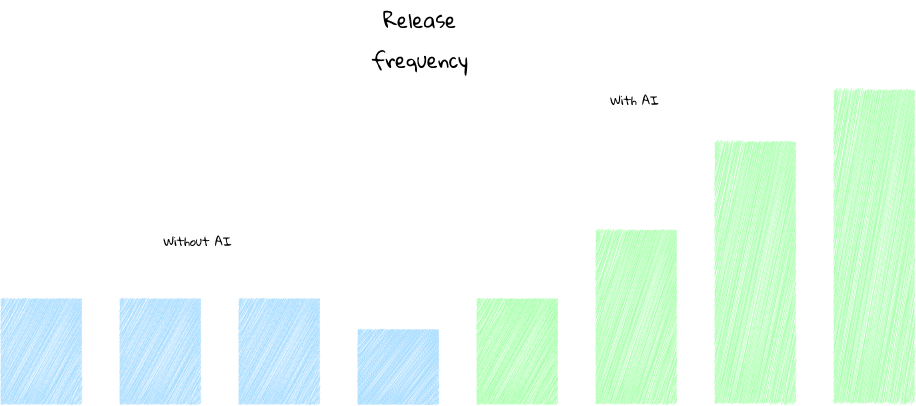 With AI writing code and humans reviewing it, the rate at which we release has increased drasticlly.