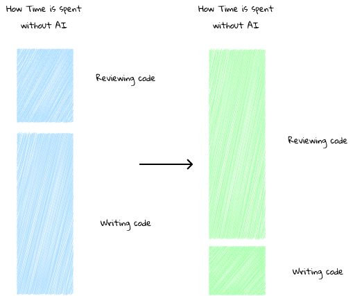 Simply put, AI makes you spend less time writing code and more time reviewing it.