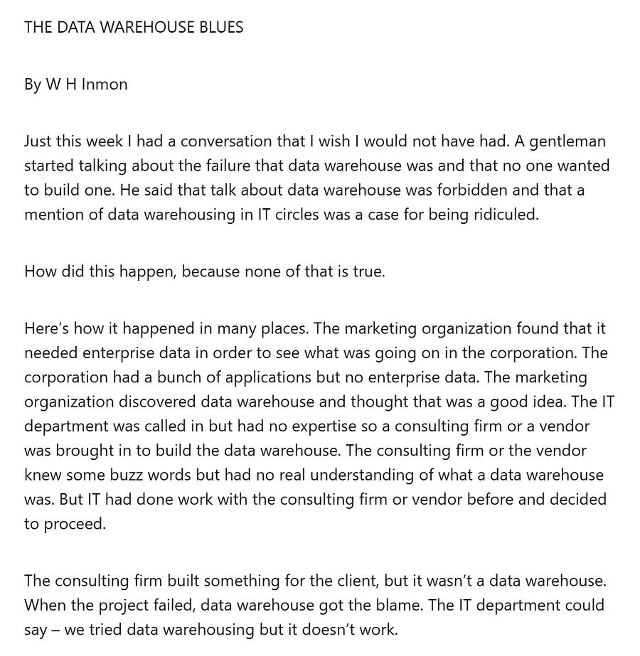 Even Bill Inmon acknowledges warehousing companies missed the warehousing!